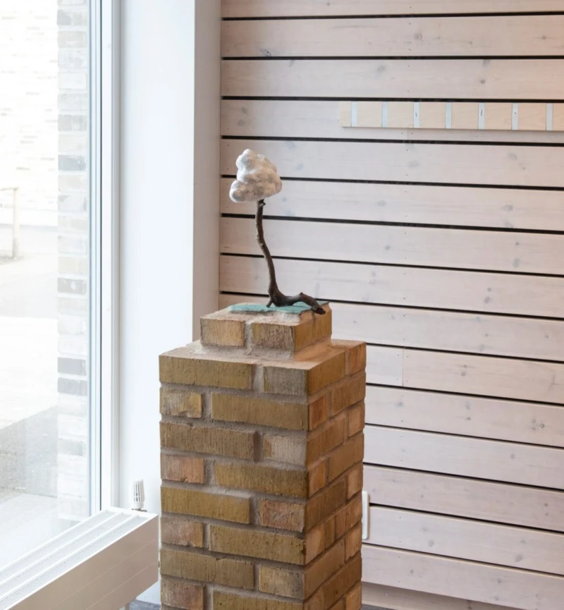 Till Laröds nya skola som stod färdig 2020 har konstnären Christina Schmid skapat en gestaltning i flera delar på temat regn. Den bruna pandan har sin förebild i verkligheten, nämligen världens enda bruna panda som bor i en pandapark i Kina.